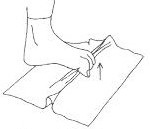With your heel on the ground, pick up a towel with your toes. Release. Repeat 10 to 20 times. Next, you can begin strengthening the muscles of your foot and lower leg by using a Thera-Band.